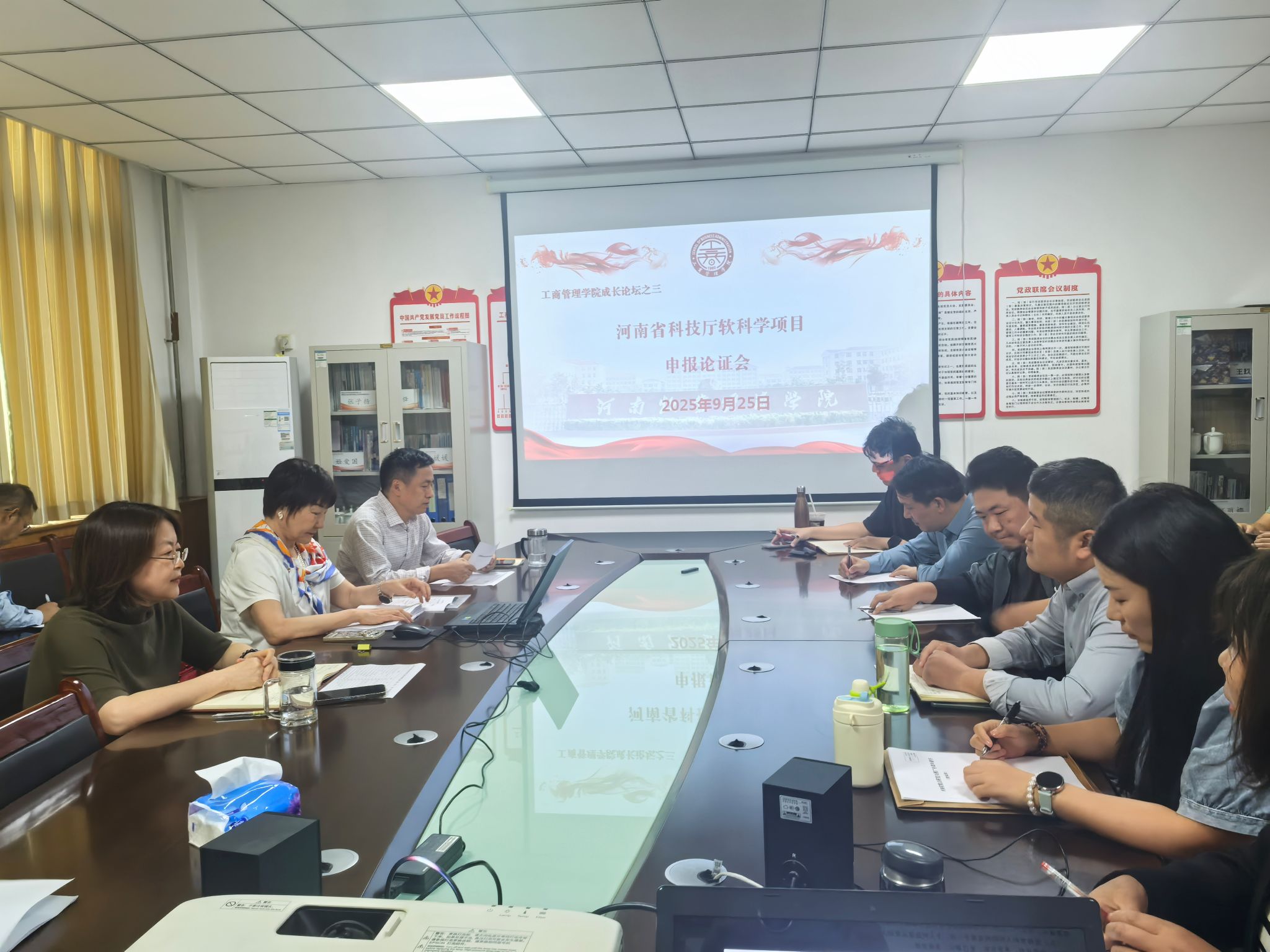 为提升我院教职工科研水平,营造学术氛围,推动学院科研工作高质量发展,9月25日下午,工商管理学院“2025-2026成长论坛”系列活动之三--河南省科技厅软科学项目申报论证会在412会议室召开。本次论证会邀请华北水利水电大学杨雪教授作为评审专家,副院长(主持工作)何丽娜、陈先锋,博士、副教授等拟申报项目人员及学院老师三十余人参加了此次会议,会议由陈先锋主持。