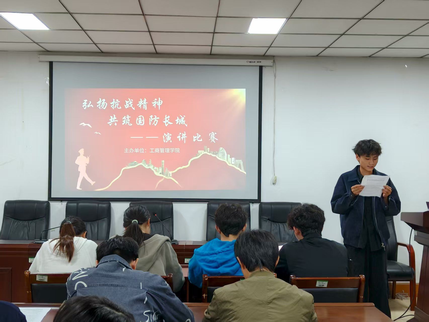 为了让我院学子在回顾历史中铭记先辈们的牺牲与奉献,深刻理解抗战精神的核心内涵,从而树立强烈的爱国情怀与民族责任感,将个人成长与国家命运紧密相连。工商管理学院于2025年9月19日成功举办了“弘扬抗战精神 共筑国防长城”演讲活动。