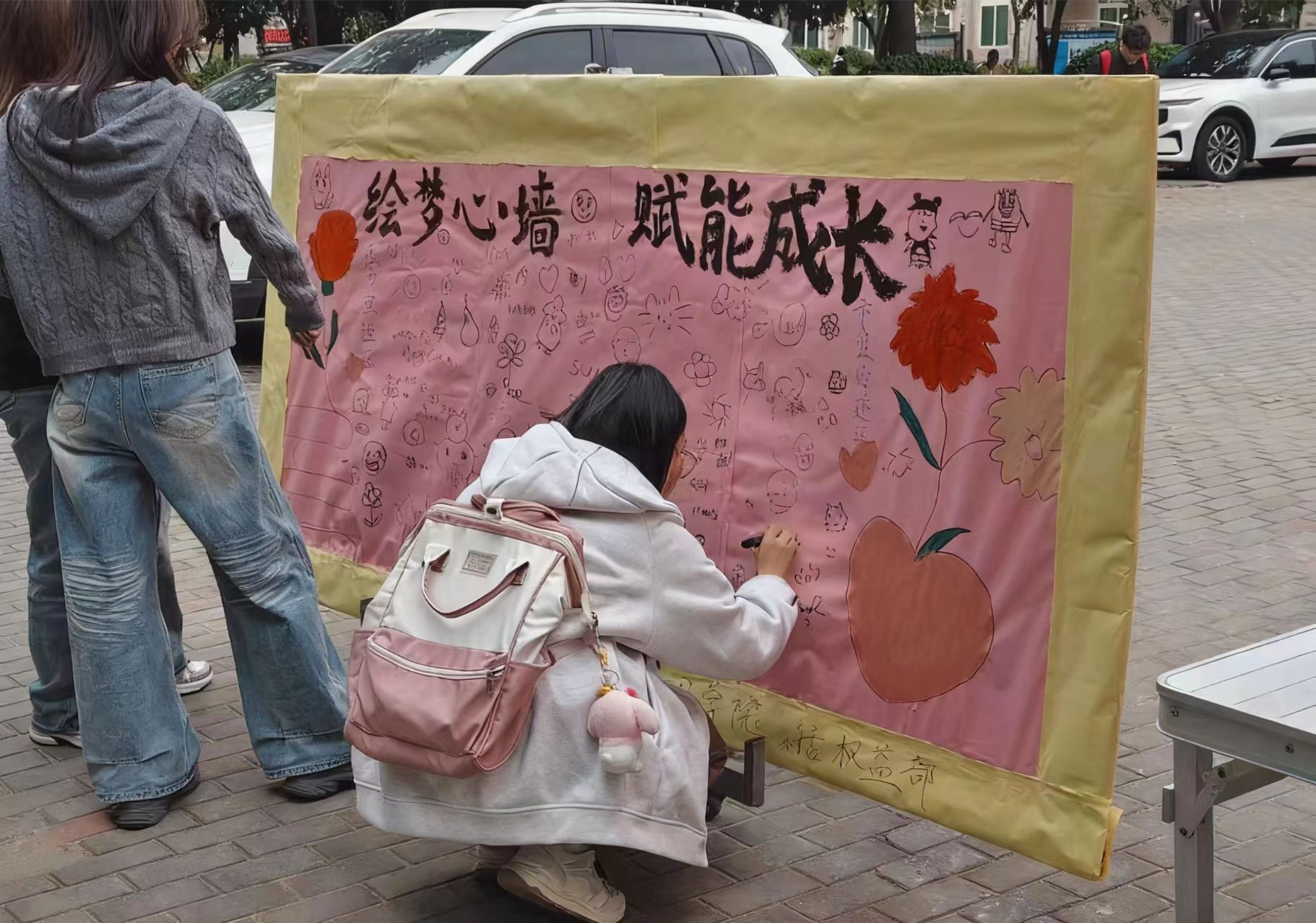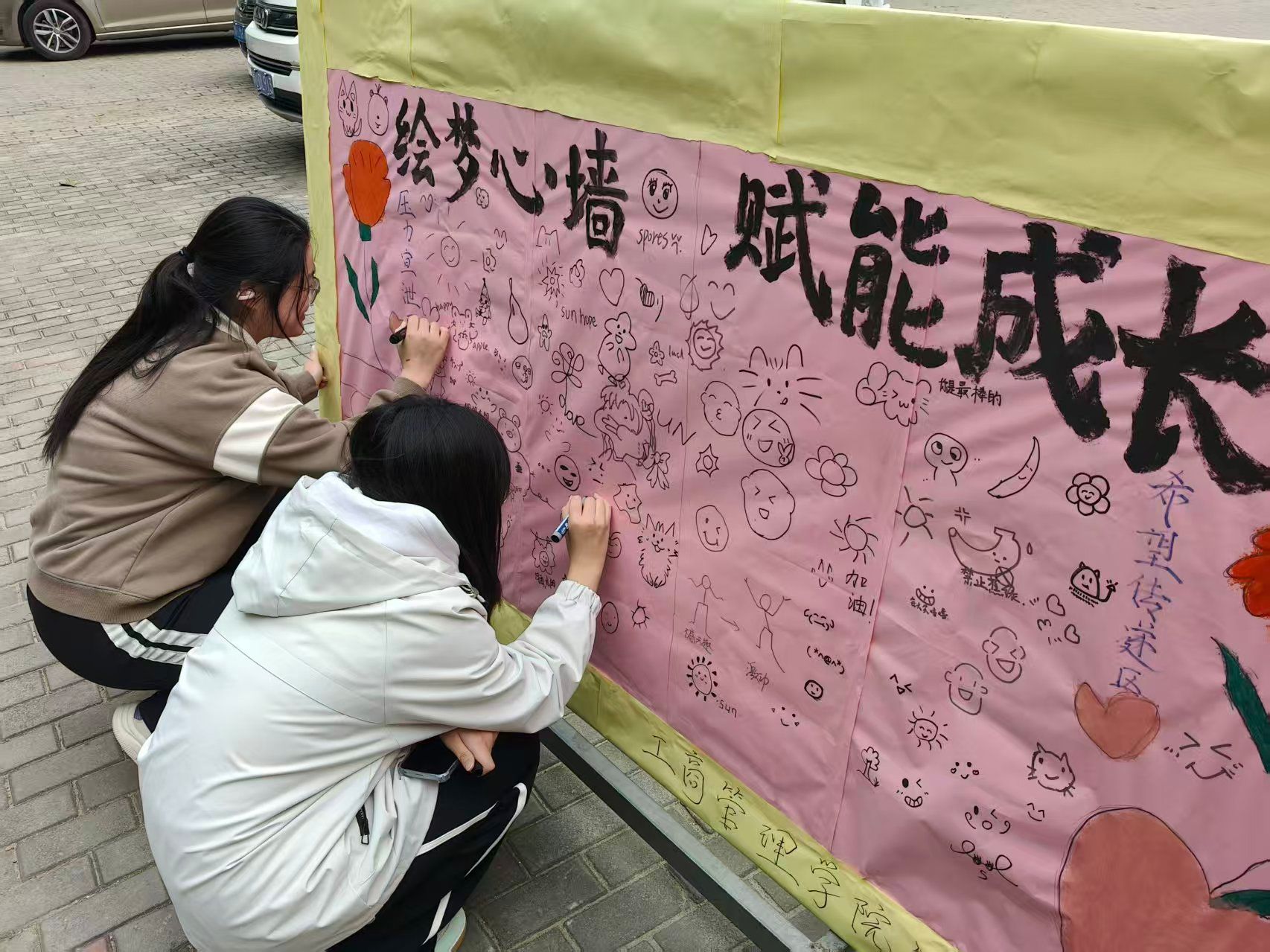 为普及心理健康知识、舒缓学生的负面情绪,为学生搭建一个释放压力、传递情感、增进交流的互动平台,工商管理学院于10月22日举办了“校园心灵涂鸦墙”活动。