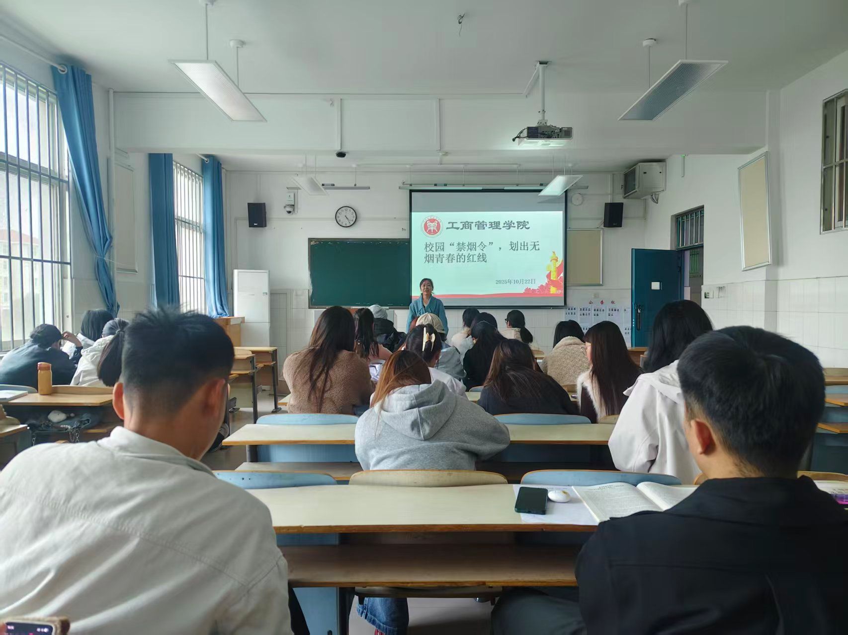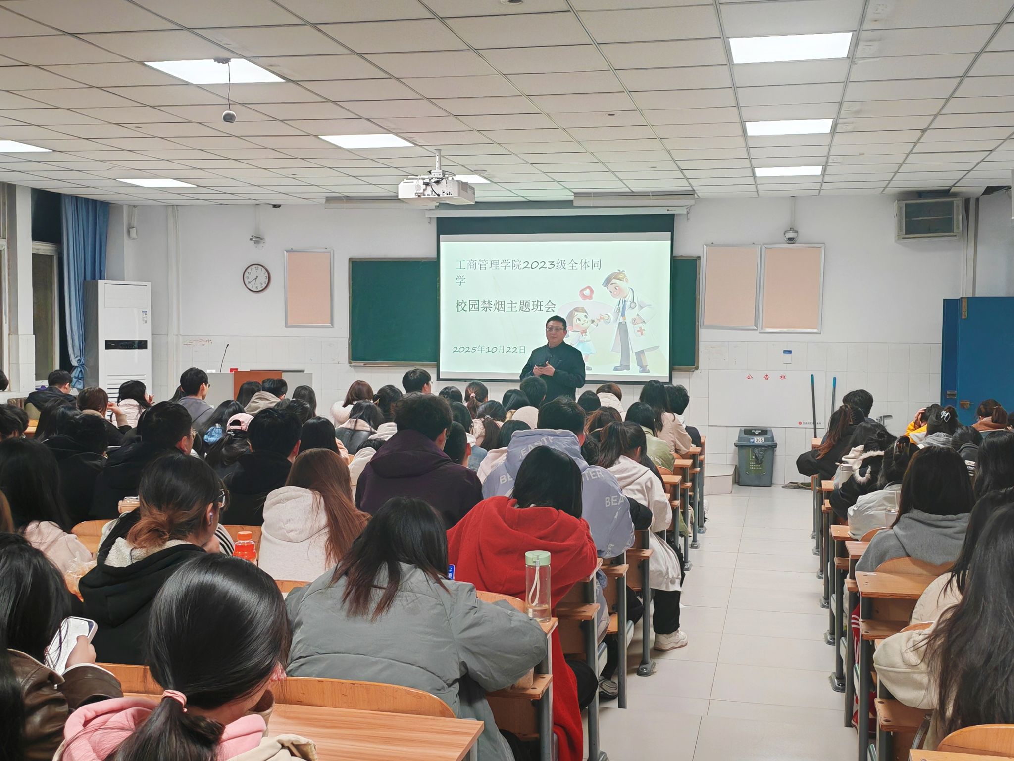 为营造健康、清新的校园环境,引导学生树立正确的健康观念,增强同学们对吸烟危害的认识,10月24日,工商管理学院党委副书记詹珅织学院辅导员深入各自班级开展了禁烟主题班会。倡导无烟校园,共同维持安全稳定。