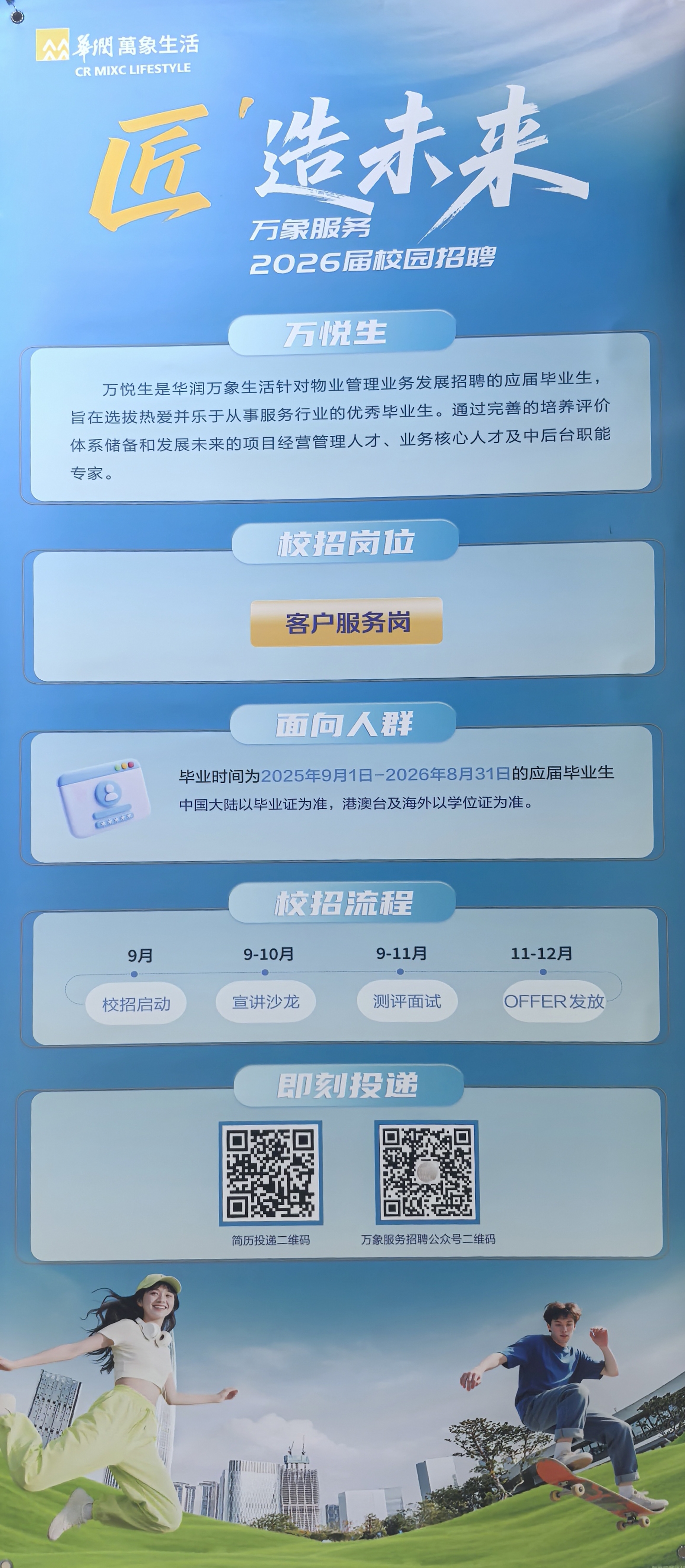 为进一步助力我校2026届毕业生规划职业起点,精准对接优质就业资源,搭建高效就业桥梁,提升就业竞争力,工商管理学院于10月16日晚19:00在227会议室举办华润万象生活专场宣讲会。