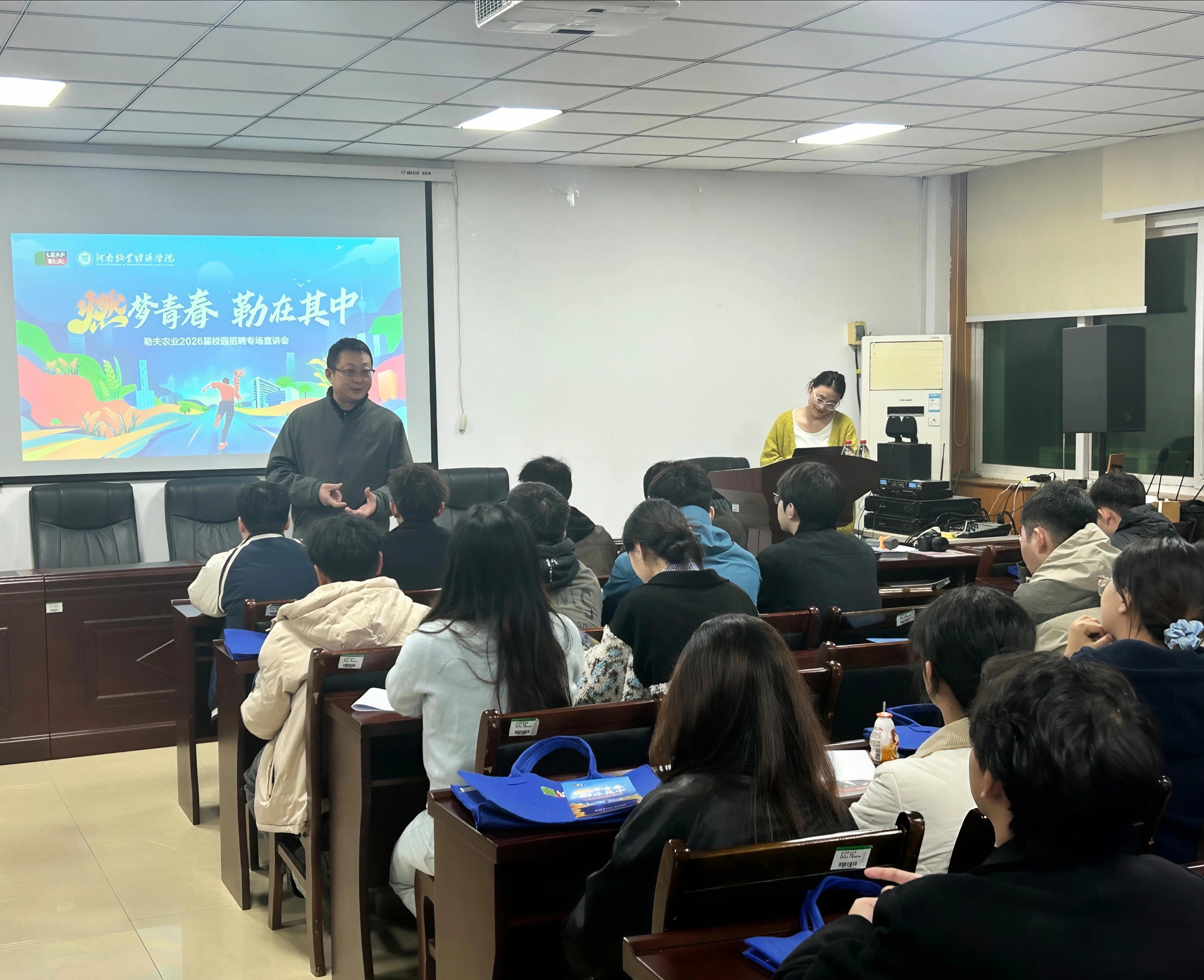 为进一步助力 2026届学子开启精彩职业生涯,帮助同学们深入了解行业前沿与标杆企业的用人需求,拓宽实习就业渠道,工商管理学院于10 月 27 日晚 19:00在227会议室举办了勒夫农业专场宣讲会。