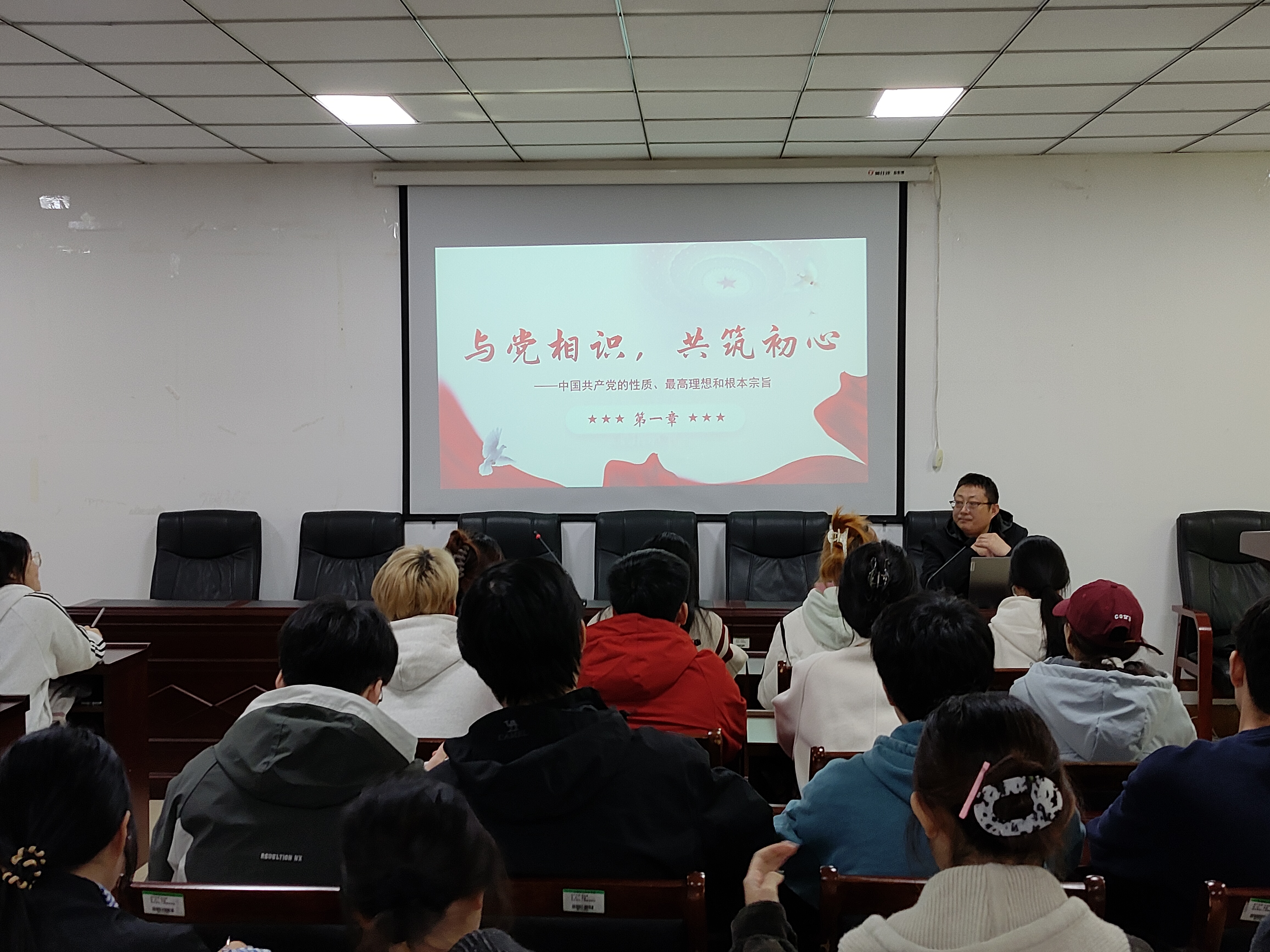 开班仪式结束后,詹珅为入党积极分子进行入党培训第一讲——“与党相识,共筑初心——中国共产党的性质、最高理想和根本宗旨”。培训伊始,詹珅从阶级性与先进性阐释中国共产党“两个先锋队”内涵,结合“三个代表”重要思想、科学发展观、习近平新时代中国特色社会主义思想及发展新质生产力等案例,印证中国共产党是中国特色社会主义事业领导核心;随后,詹珅明确共产主义的科学属性,梳理社会发展规律,分析其实现的长期性;最后,詹珅回顾“为人民服务”写入中国共产党章程历程,解读核心内涵,强调群众路线实践要求,号召学员践行宗旨。