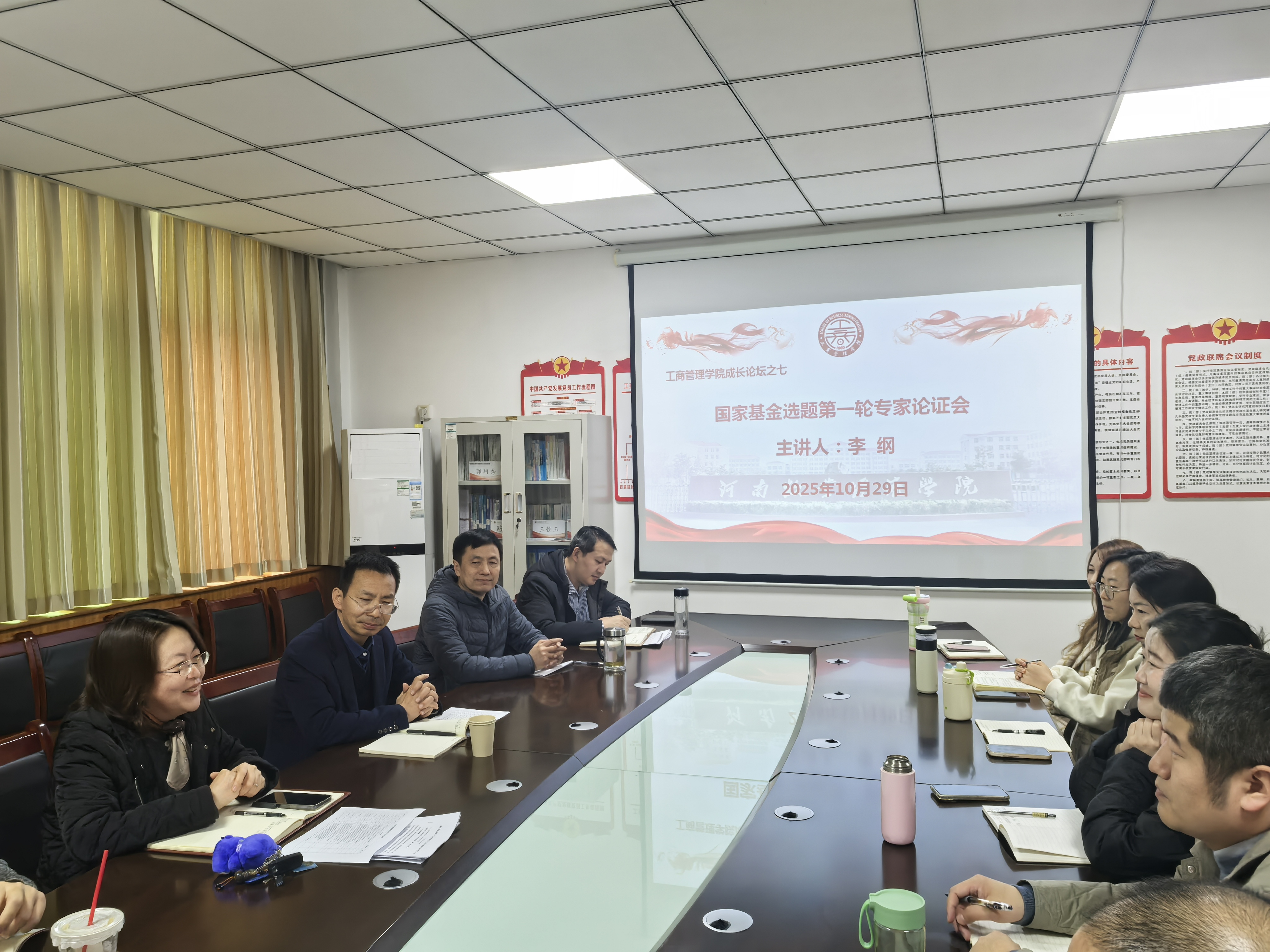 为进一步提高国家基金项目申报质量,10月29日下午,工商管理学院2026年度国家基金选题第一轮专家论证会在412会议室召开。本次论证会邀请华北水利水电大学李纲教授作为评审专家,副院长(主持工作)何丽娜、陈先锋,博士、副教授等拟申报项目人员三十余人参加了此次会议,会议由陈先锋主持。