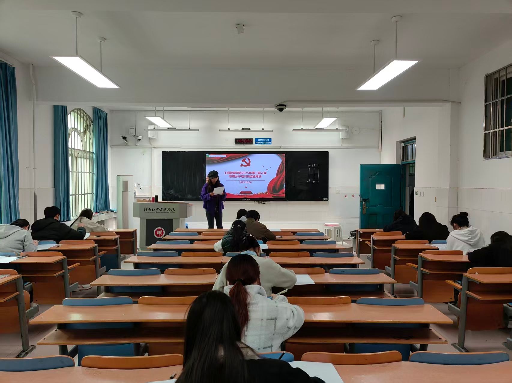 为深入学习贯彻习近平新时代中国特色社会主义思想,提升入党积极分子的政治素养,工商管理学院于2025年10月30日在A103、A104 教室开展了2025年第二期入党积极分子结业考试。