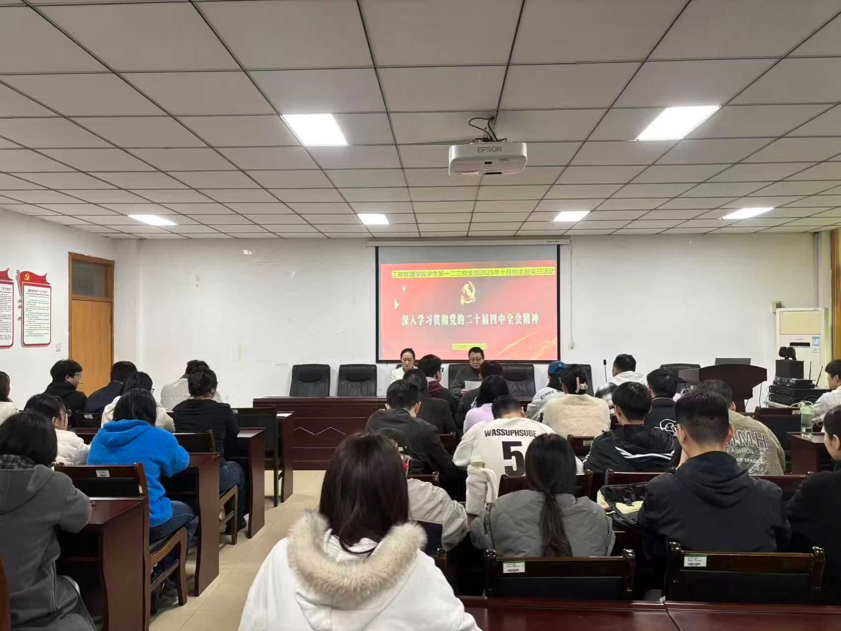 为全面准确把握并贯彻落实党的二十届四中全会精神,聚焦高质量发展主题,增强“四个意识”、坚定“四个自信”、做到“两个维护”,工商管理学院于2025年10月30日中午12:00在227会议室开展了工商管理学院学生第一、二、三党支部十月份主题党日活动。