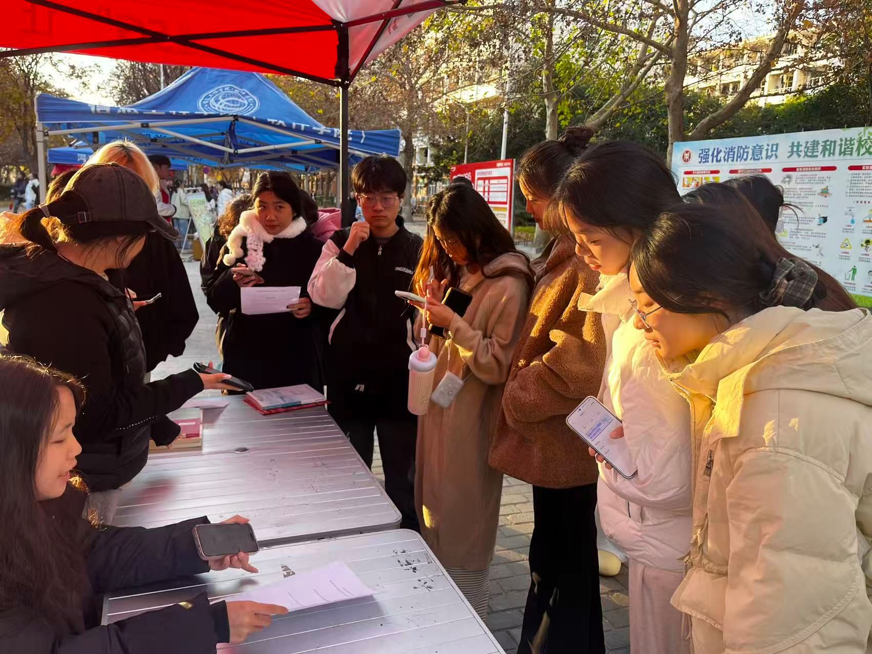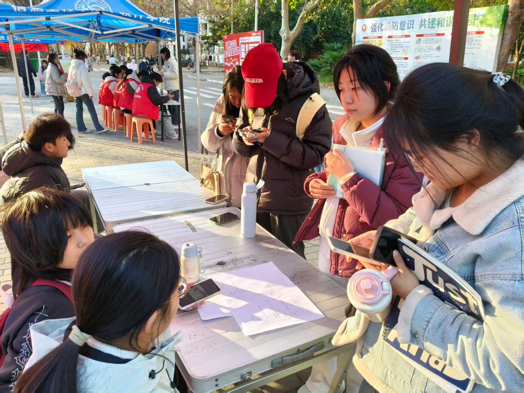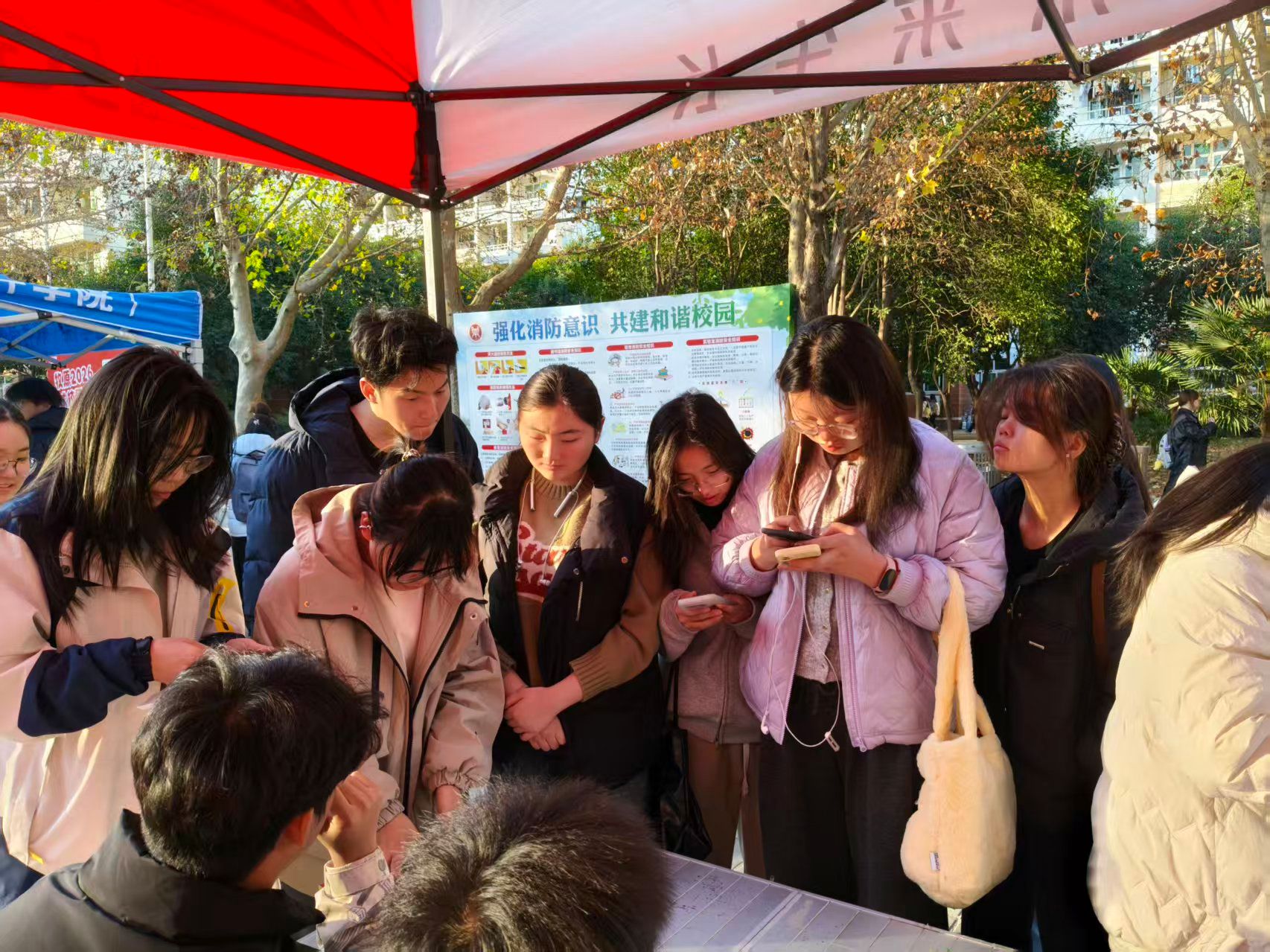 本次活动设置“消防权益知多少”线下答题、“隐患图片找茬”等趣味环节,将消防知识与校园日常生活场景深度融合。答题区围绕宿舍用电标准、消防通道规格等核心知识点设计考题,引导同学们精准掌握安全准则;实景图“找茬”环节中,同学们通过观察模拟宿舍场景的图片,细致识别违规用电、消防设施遮挡等潜在隐患,让日常不易察觉的风险直观具象化。活动现场,同学们积极参与、踊跃互动,氛围热烈而有序,知识讲解与理论实操在此过程中有机结合。大家纷纷表示,本次活动不仅让自己学到了实用的消防技能、提升了安全自救能力,更强化了自身作为校园安全守护者的责任意识。