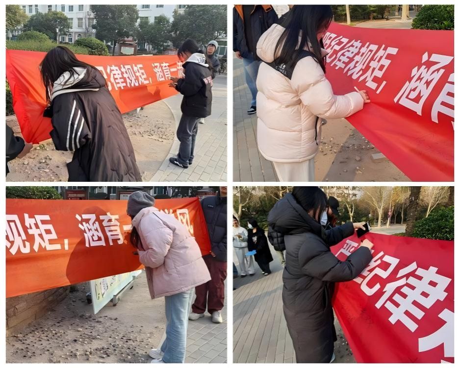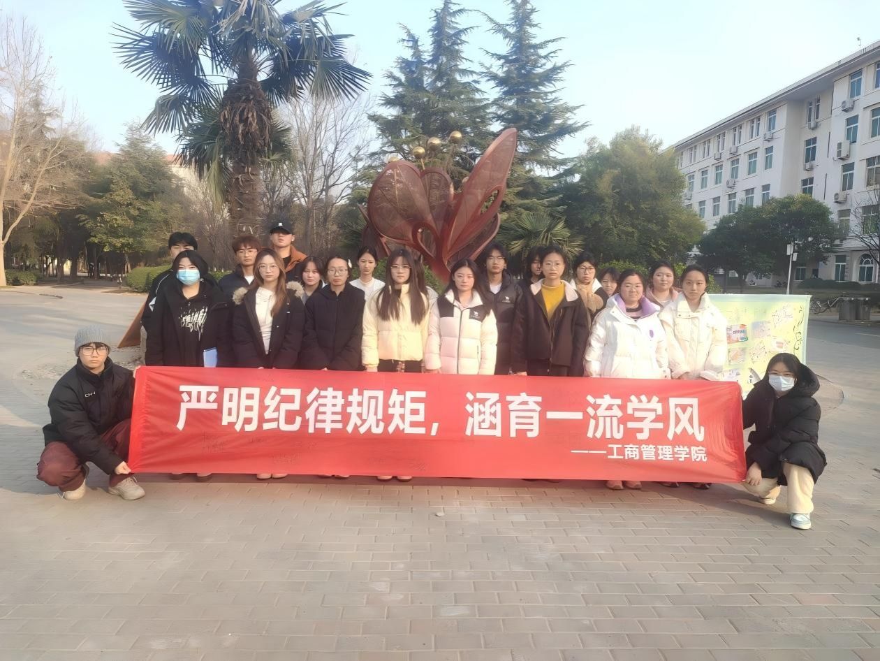 为深入贯彻落实学校学风建设工作部署,强化同学们的纪律意识与诚信素养,培育严谨求学、求真务实的治学态度,工商管理学院于2025年12月10日举办“严明纪律规矩 涵育一流学风”签名活动。