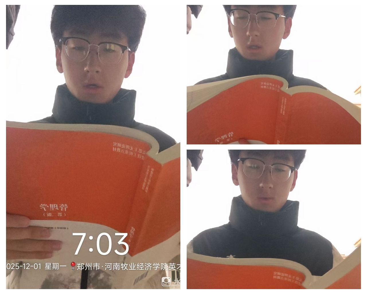 为助力我院学生养成良好学习习惯,强化学风建设,促进知识巩固与复习效率提升,工商管理学院于2025年12月1日至12月11日开展“晨读伴我行”打卡活动。