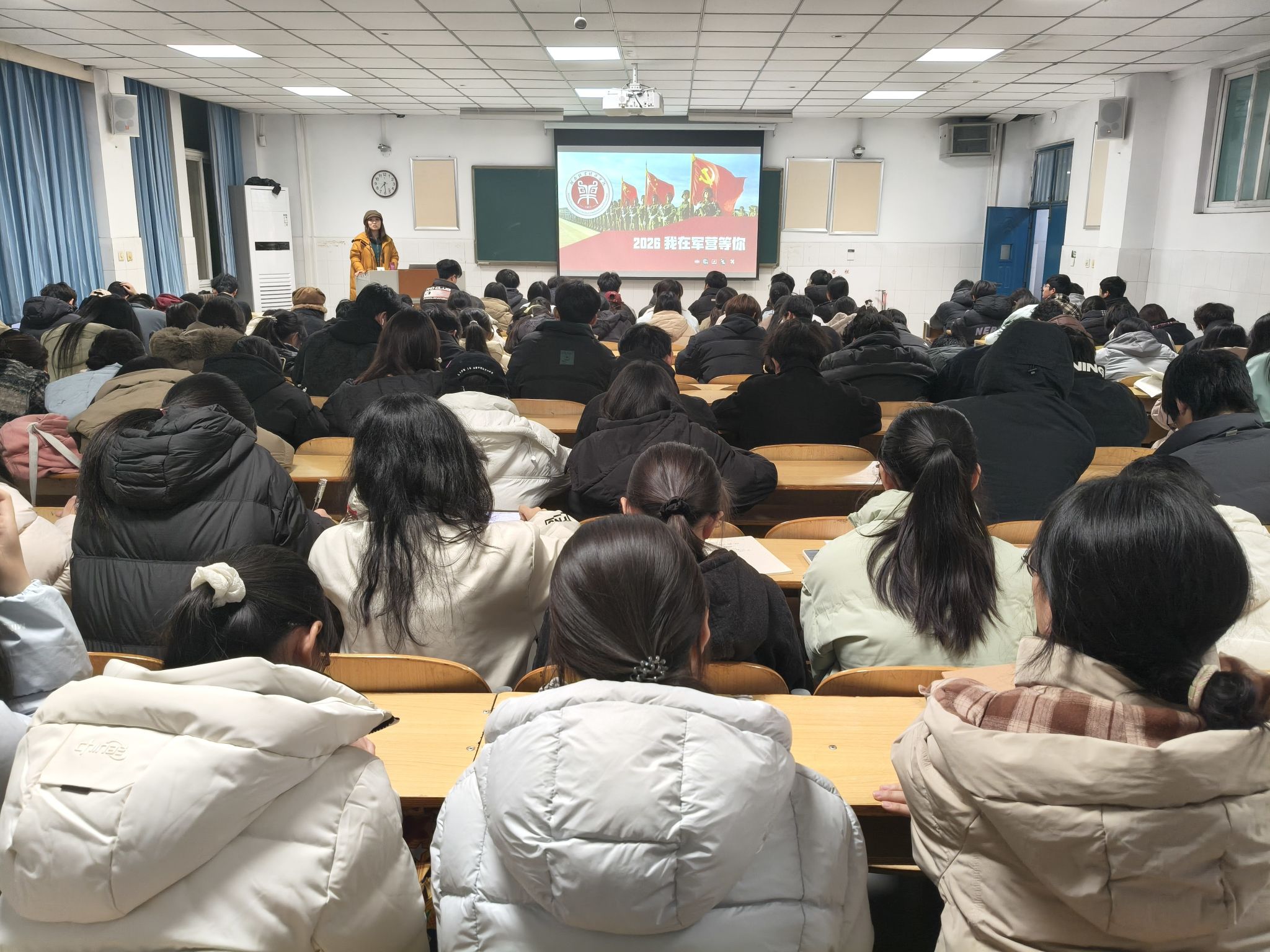 为积极响应国家号召,弘扬爱国拥军传统,引导青年学子树立强国强军信念,工商管理学院于12月24日19:00分别在W303、W305教室开展了“2026 我在军营等你”征兵政策宣讲会,由工商管理学院武装专干王梦如担任主讲人,学院全体学生积极参与。