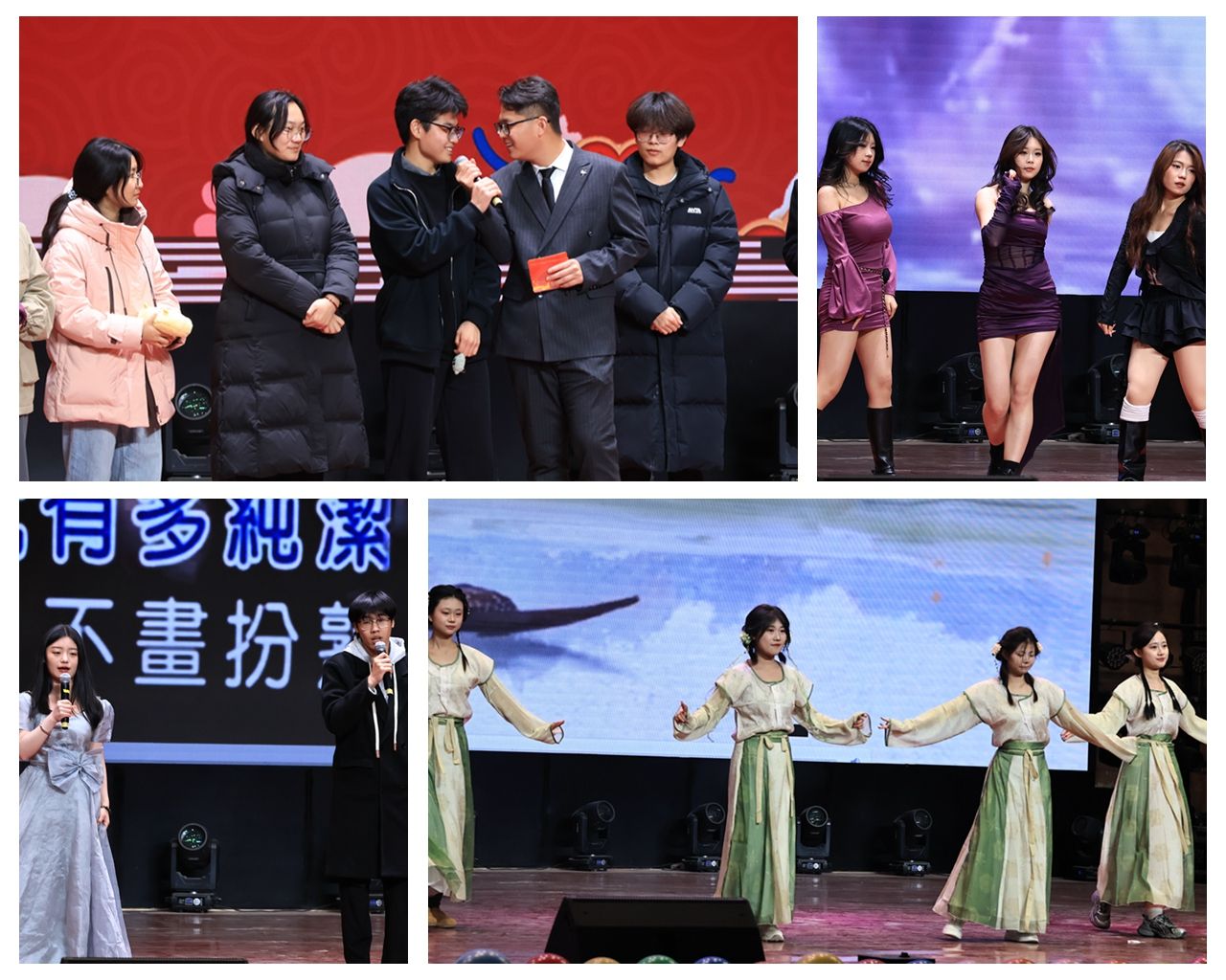 活力四射的爵士舞《Diamond》率先点燃全场气氛;深情款款的歌曲《我是真的爱上你》《安和桥》引人共鸣;校Kpop队与街舞队带来的《O.O》《Nobody Knows》动感十足,展现了青春的张扬与力量。25级物业01班陈泽一同学的吉他弹唱《可不可以》清新真挚,24级工商01班王彦涵同学的独唱《晚安》温暖动人,赢得阵阵掌声。